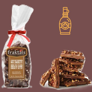 Handmade in Quebec, Fraktals sources the highest quality ingredients for a mouth-watering taste experience. Notes of Canadian maple syrup are highlighted in Fraktals’ spectacular buttercrunch core. Fraktals' buttercrunch resides in between two layers of Belcolade Belgian chocolate (both original milk chocolate and new 70% dark chocolate). Production in small batches, allows this artisanal treat to be handmade from the initial stirring of the buttercrunch to the finishing touch of a hand tied ribbon. -